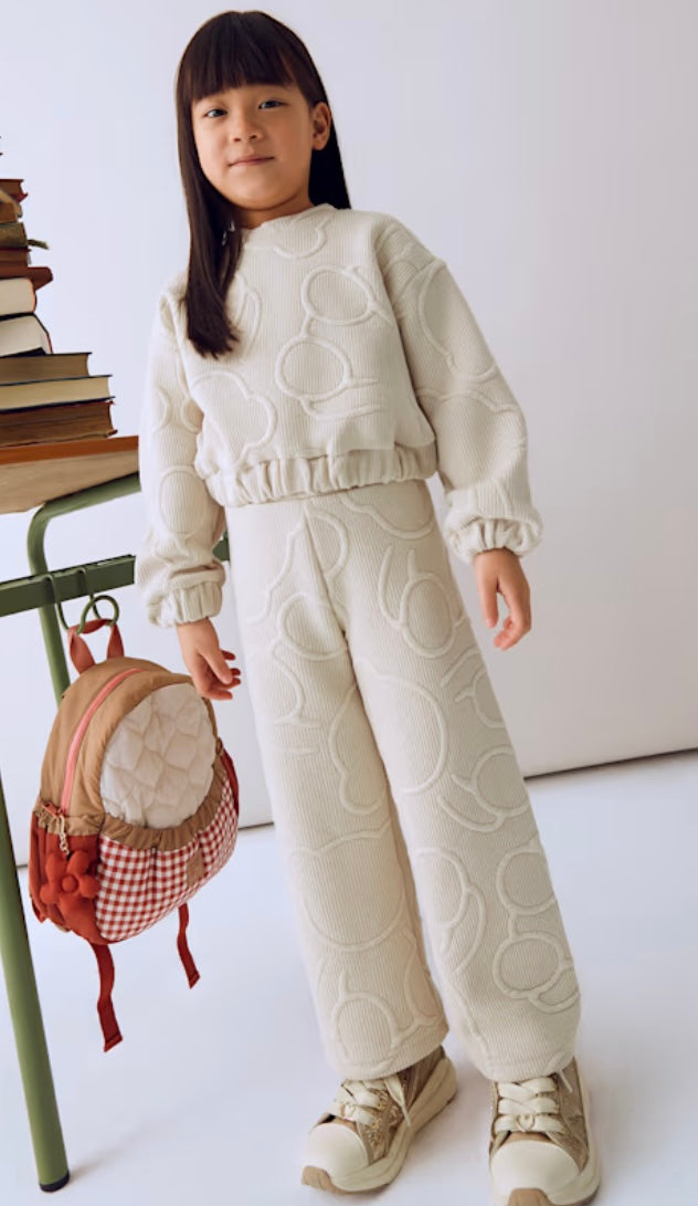 Felpa manica lunga per bambina. Girocollo. Chiusura con bottoni a pressione nella parte posteriore. Esterno in tessuto con effetto imbottito.